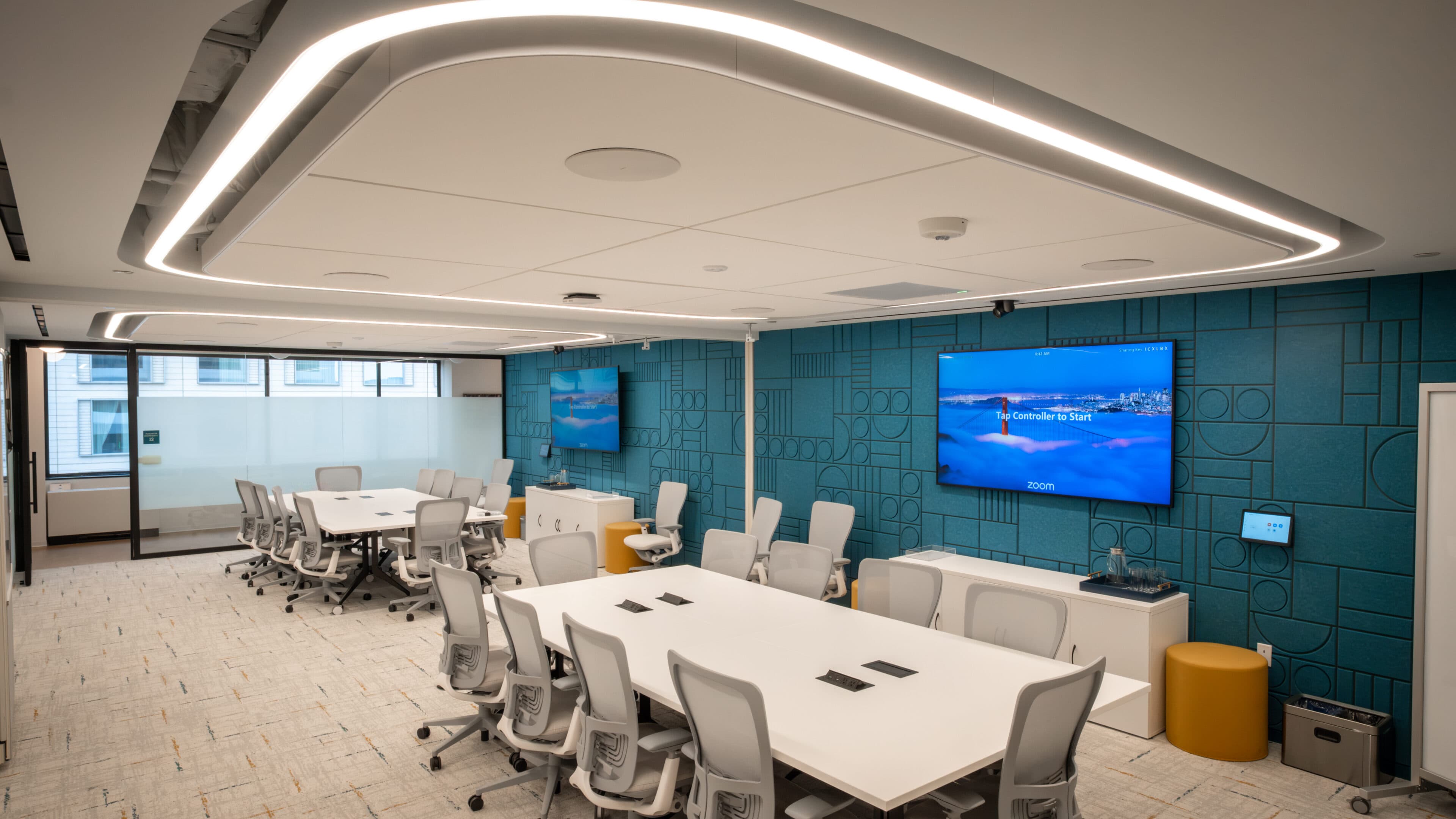 NTI provided Aledade with a full-scale AV and collaboration system integration, designed to meet the demands of a modern, connected workspace. Custom mounting solutions were implemented to navigate low ceiling constraints, ensuring optimal performance and a clean, professional design.